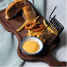 This filling and flavorful burger is prepared with special spices and cooked on the grill. It features caramelized onions, mushrooms, and cheddar cheese, all wrapped in dough and baked in a stone oven. Served with French fries, onion rings, and cheddar sauce