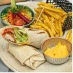 Chicken pieces are sautéed with the chef's special spices and California colored peppers, then cooked with soy sauce. The mixture is wrapped in tortelli bread with added cheddar cheese and grilled briefly. Served with a mini salad, French fries, and cheddar cheese