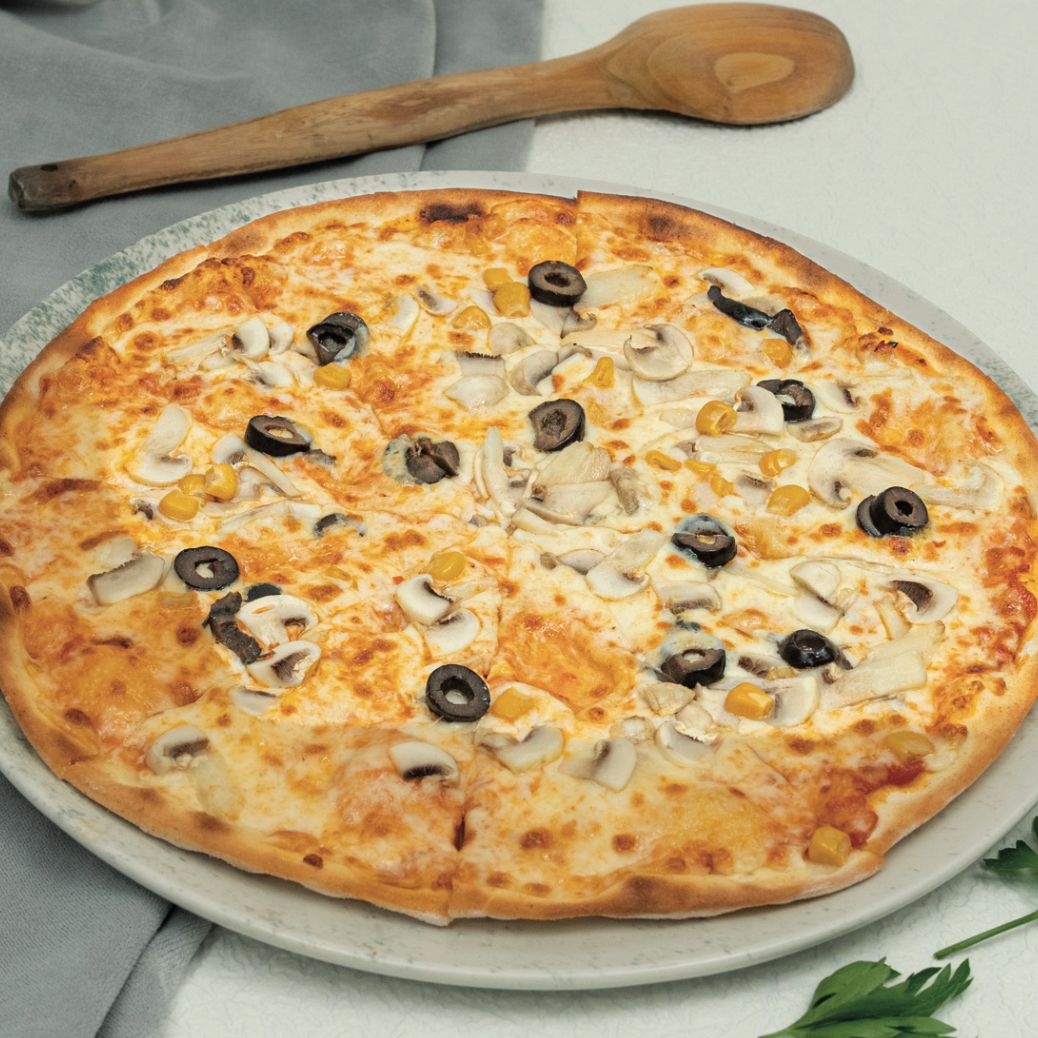 Embark on a flavor journey into the mysterious world of mushrooms! Glazed on thin dough, this pizza brings together the slight bitterness of fresh mushrooms, the creamy texture of mozzarella cheese, and the subtle sweetness of corn. Feel the unique taste of nature in every bite and reach the peak of pleasure!